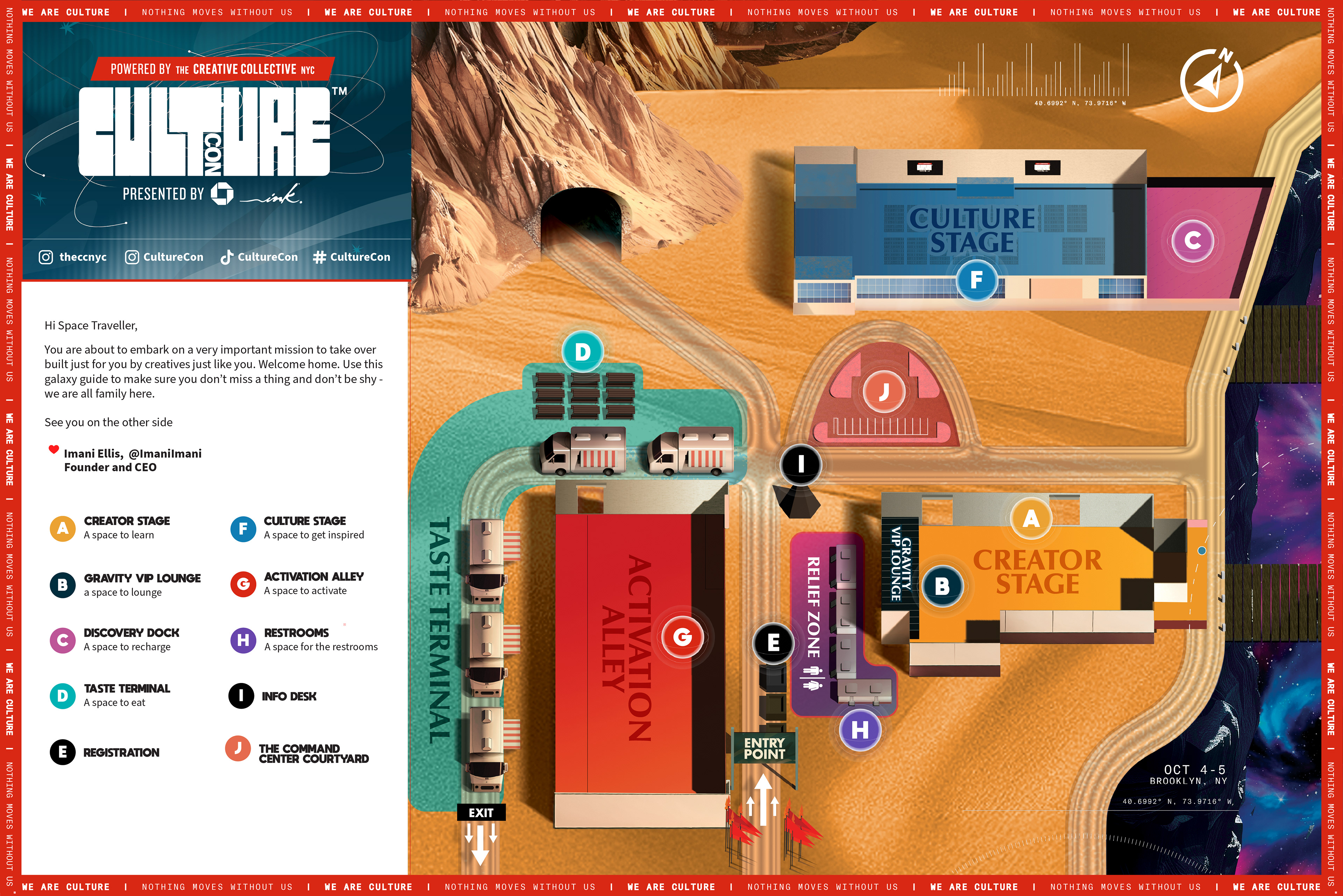 CultureCon 2025 represented a watershed moment in the world of cultural festivals and creative entrepreneurship. Positioned as the premier gathering for Black and brown creatives, CultureCon isn’t just a conference—it’s a vibrant homecoming that fuses inspiration, education, and empowerment on a grand stage. This year, CultureCon thematically shot for the stars, with “Take Space: The New Frontier” as its unifying concept, inviting creative entrepreneurs and cultural influencers to boldly reimagine their presence, voice, and impact. The event took place in Brooklyn’s Duggal Greenhouse, drawing 10,000+ attendees for days packed with immersive activations, keynotes, job fairs, and digital-first brand experiences.